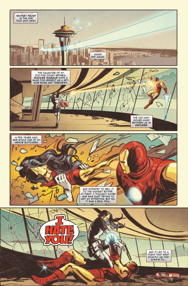 FRIENDS, LOVERS OR NOTHING! IRON MAN is on the hunt for the missing captives as MADAME MASQUE continues to twist the knife in Tony’s back! Could Tony really be at fault for what’s happening? The past collides with the present as JOSHUA WILLIAMSON & CARMEN CARNERO continue to pave the future for IRON MAN! Plus: STEVE ROGERS, CAPTAIN AMERICA, throws his mighty shield! But is it WITH Iron Man or AGAINST?