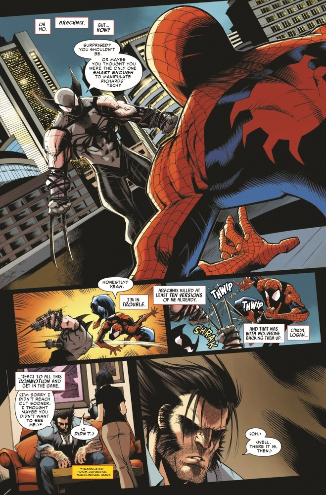 TEARFUL REUNION AND DEADLY GOODBYE! At long last, LOGAN reunites with MARIKO. But can they reconcile over an impossible situation? And will ARACHNIX allow them this moment, or wreak death and destruction that even SPIDER-MAN can’t stop?