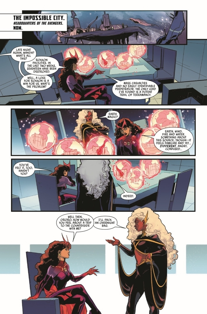 IN THE BATTLE FOR MAGIC AND BILLY’S SOUL, WHO WILL WIN? NATURE OR NURTURE? Wiccan’s journey on the Witches' Road begins to have ripple effects as the Avengers become aware of magical mischief spreading across the globe! Plus, evil reveals her face…and it’s NOT Agatha Harkness! P.S. The Weather Goddess herself, Storm, might have some thoughts about tampering with elementals…