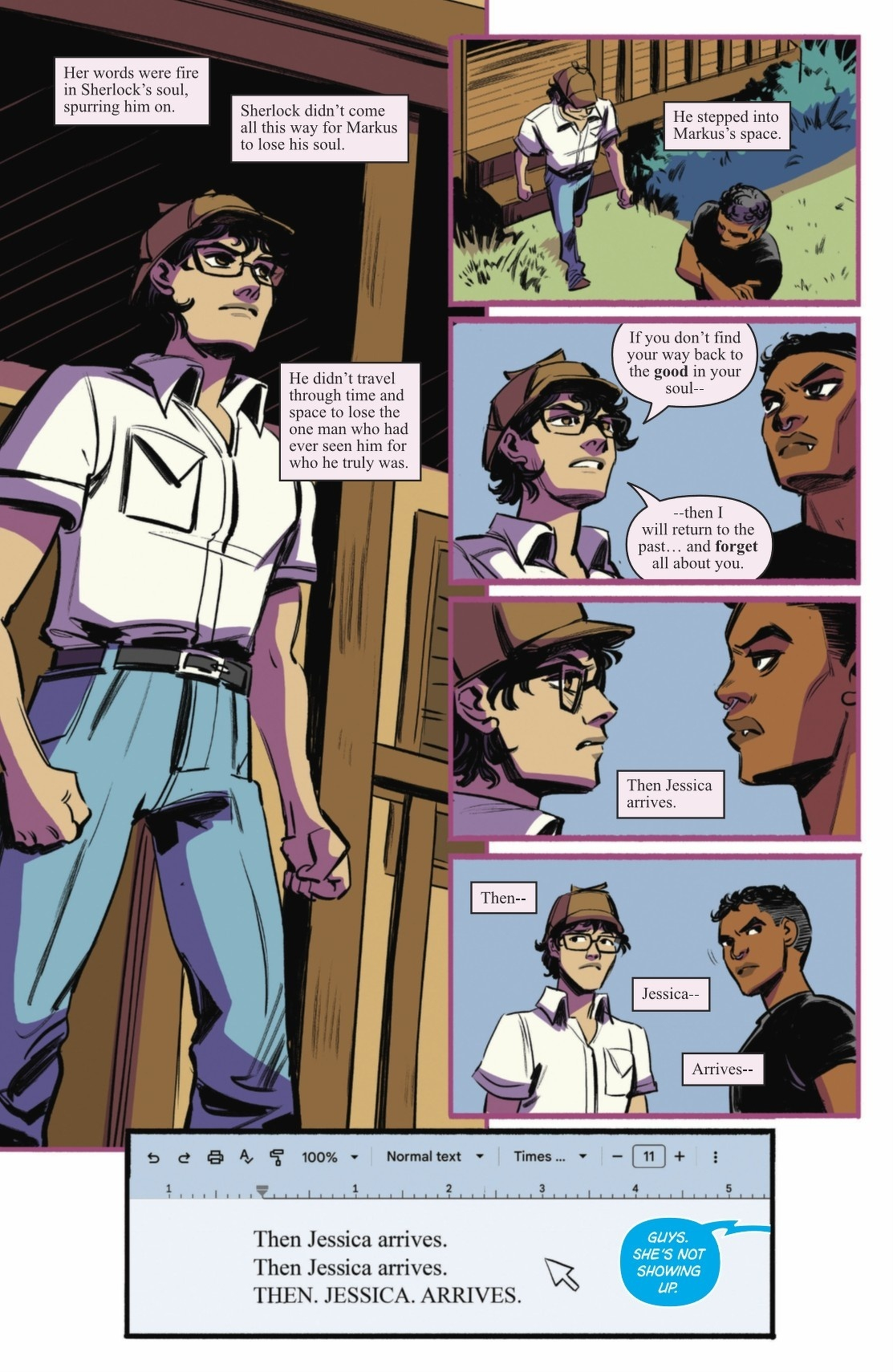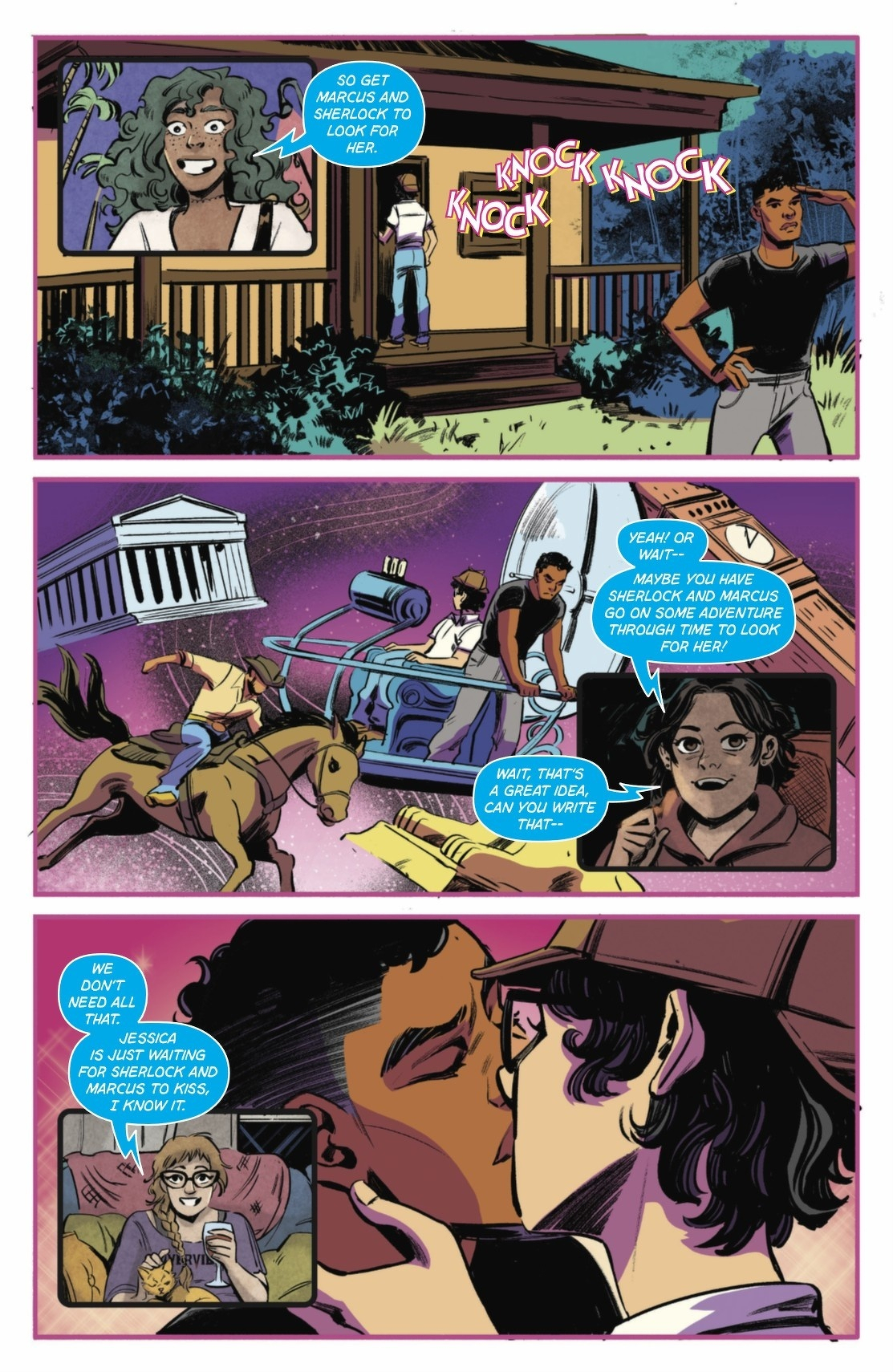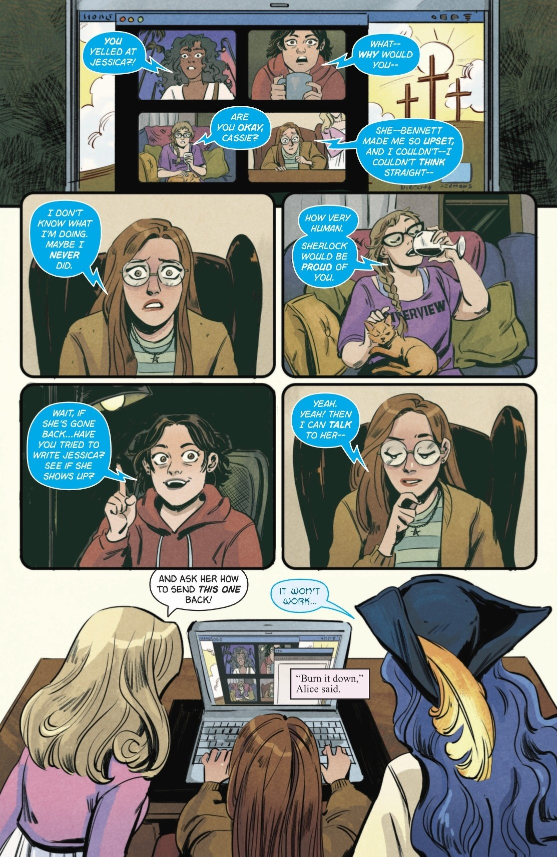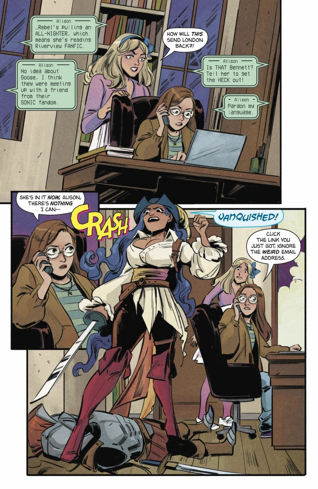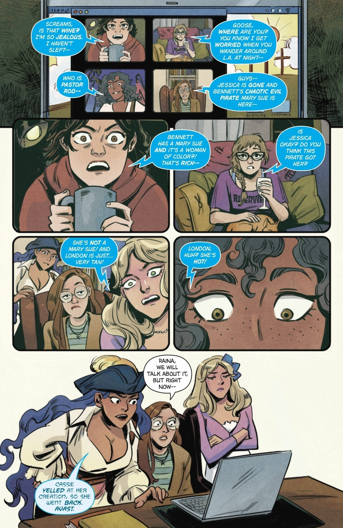 When words hurt more than villains, friendship takes the biggest hit! An emotionally charged fight drives a wedge between Jessica and Cassie. Jessica disappears back to the Mary Sue world, leaving Cassie desperate enough to team up with her former best friend Bennett to make amends. But the only way into a fanfic? Writing fanfic. About each other. Cassie’s nightmare just keeps getting worse! Experience the Mary Sue world for the first time in Meghan Fitzmartin (DC Superhero Girls, Batman: Urban Legends, Tim Drake: Robin) and Lisa Sterle’s brilliant new series.