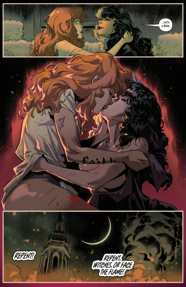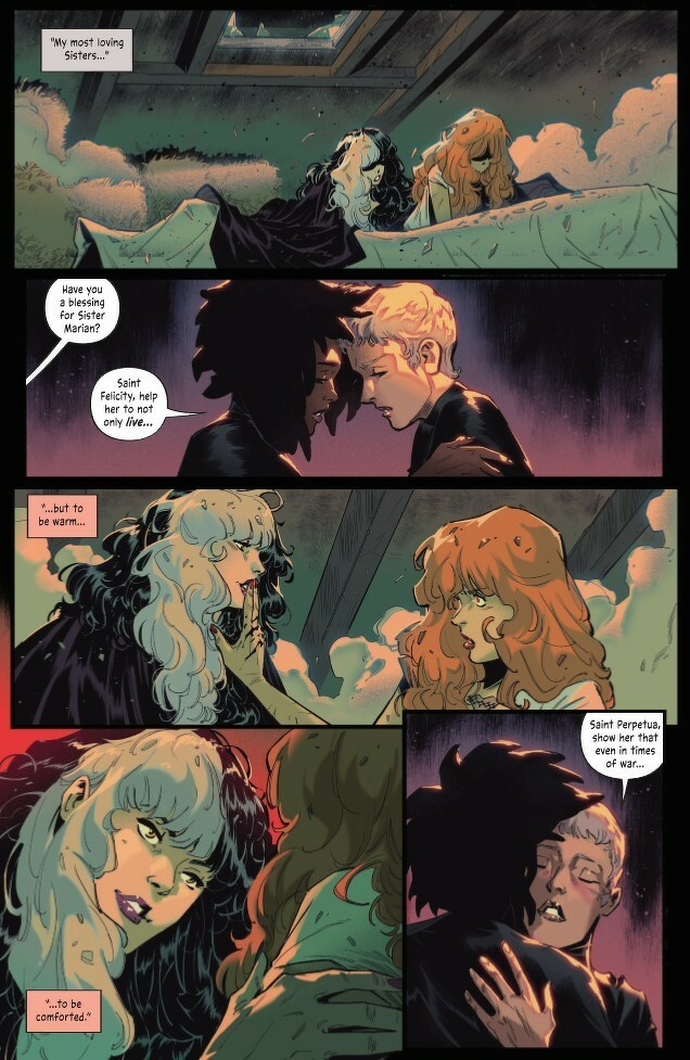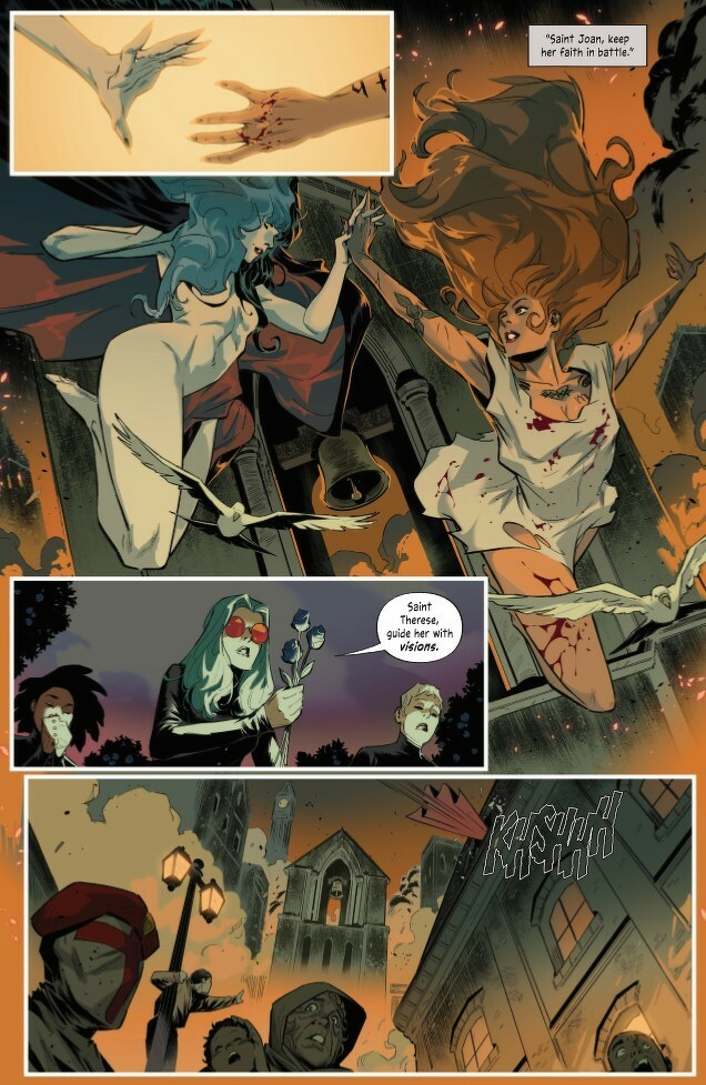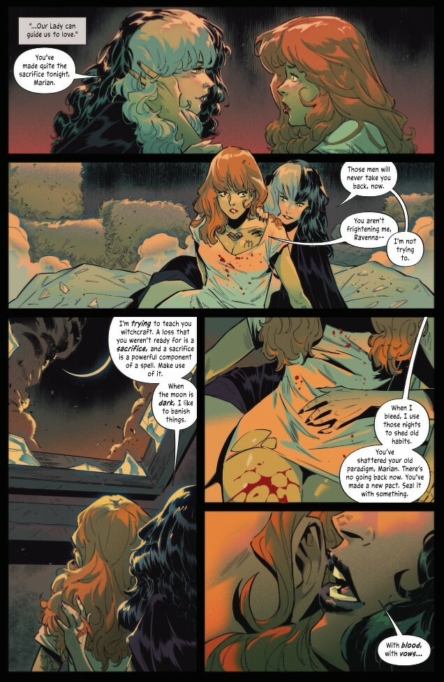The fight for control in the city of Vespers is more treacherous than ever before! Now an accomplice to the murder of a member of the Church, Marian goes on the run with Ravenna! But Marian’s Sisters are also in danger as the Church’s enforcers arrive on their doorstep… Who will save them if not their divine Mother? With their pursuers closing in on all fronts, will Marian finally embrace her identity, not just as a heretic—but as a witch? Writer Tini Howard (Catwoman, Excalibur, Assassinistas) and artist Joe Jaro (Buffy the Last Vampire Slayer) up the ante with their bold tale of religious horror and rebellion!