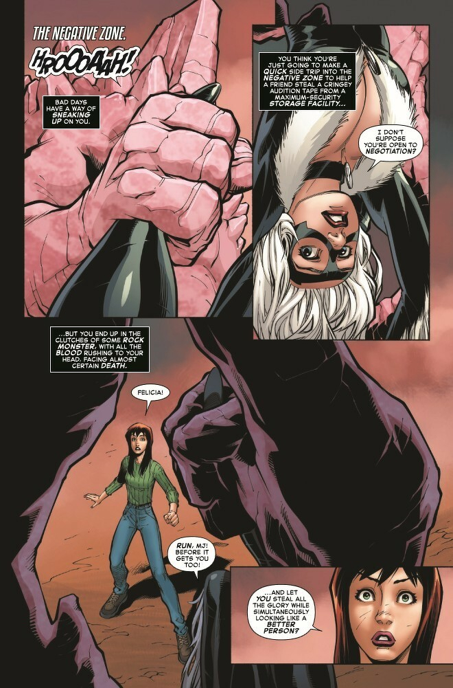 CAT GOT YOUR TONGUE, VENOM?! What was supposed to be a simple smash and grab for BLACK CAT and VENOM takes a nosedive into the COSMICALLY AND CATACLYSMICALLY FLARKED. Probably because they’re smashing and grabbing from the most heavily guarded place in the Multiverse. But this one’s personal for Mary Jane and Felicia, and the cat and the sinister symbiote ain’t leaving this party before they get a few good licks in!