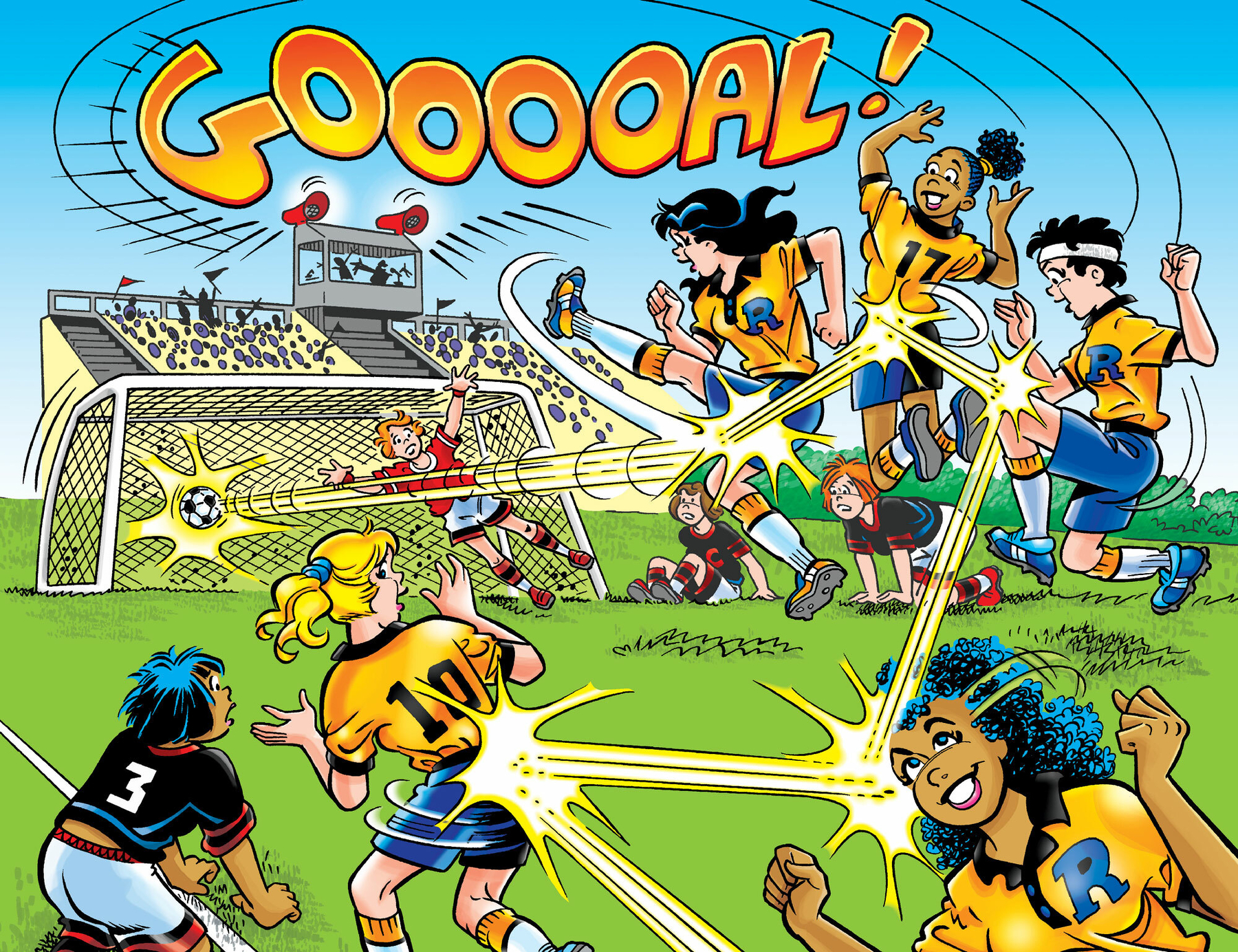 First appearance of the new character and soccer star ETERNITY FIELDS just in time for FIFA World Cup 2026! It’s almost time for the big Boy vs. Girls All Star Soccer Game and Reggie wants his team to do whatever it takes to win—but when a mysterious new girl named Eternity Fields joins the girls’ team and makes them unstoppable, the boys are going to have to work extra hard to beat them . . . but will they heed Reggie’s advice? And just who is Eternity Fields, and how is she so good?! Celebrate the World Cup with this fun, sports-themed issue!