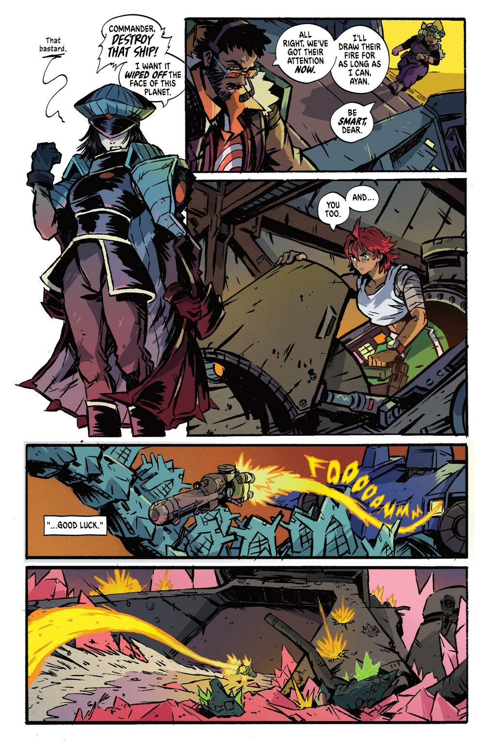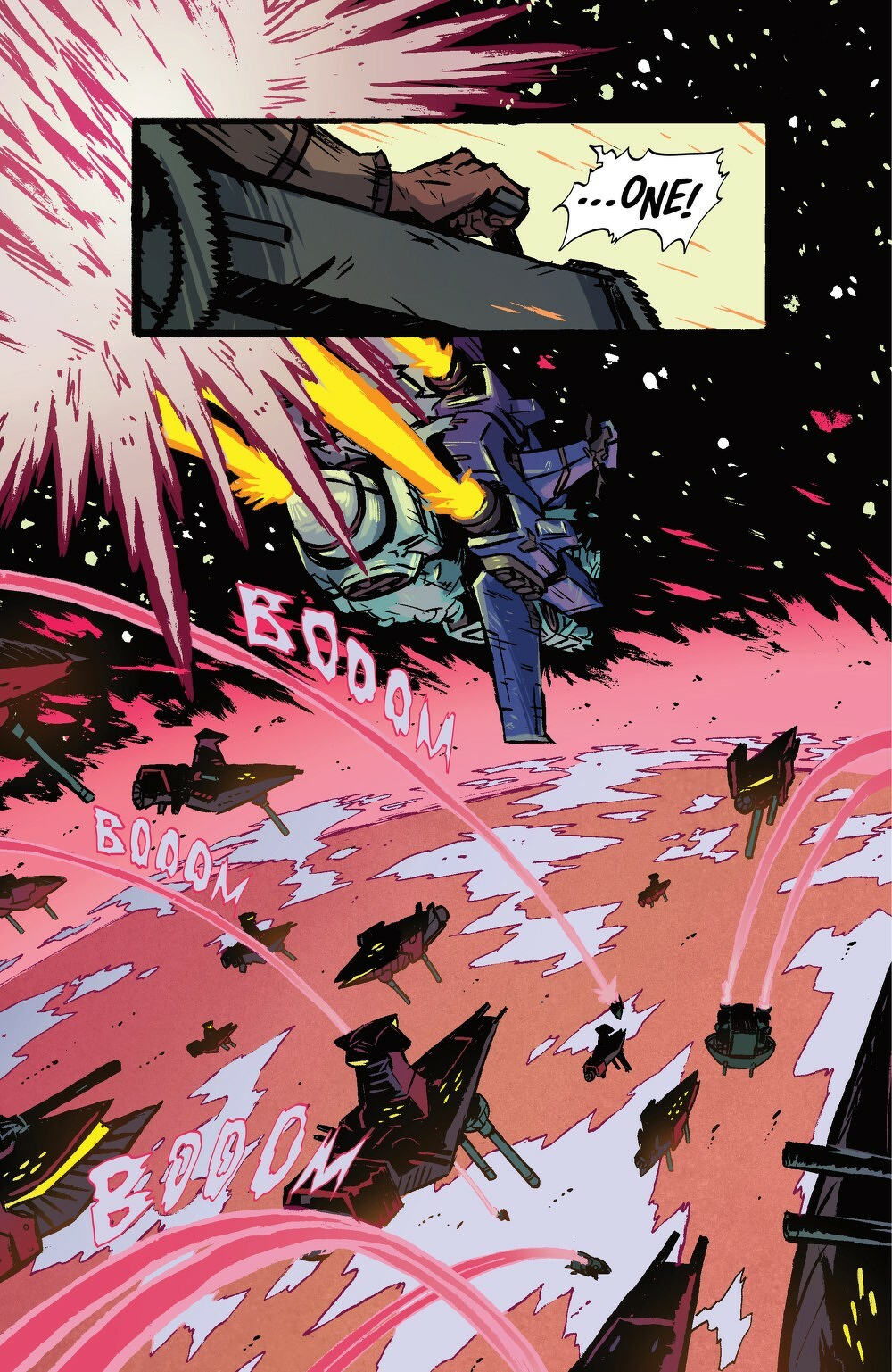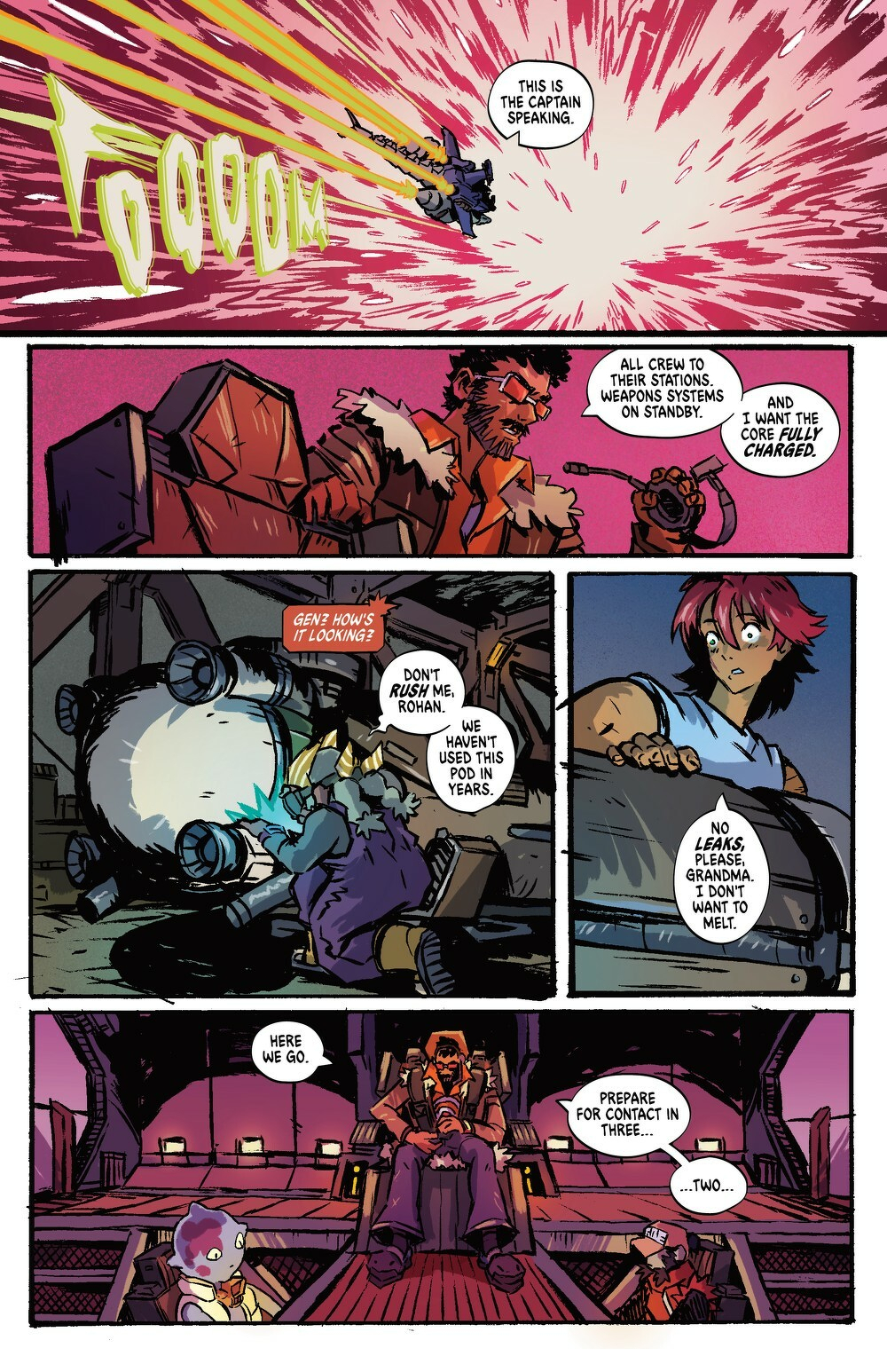 It’s Starship Godzilla vs. SpaceGodzilla in an epic sci-fi kaiju battle! The rebel base is under attack by SpaceGodzilla and the Xilien Empire! Thankfully Ayan, the first mate of Starship Godzilla, is able to convince the rest of the crew to intervene and protect the rebel base from utter annihilation. It’s Starship Godzilla vs. SpaceGodzilla for the fate of the rebels! But once the crew starts this battle, there’s no going back—they will become enemies of the Xilien Empire for life! Don’t miss the epic conclusion to the first arc of Chris Gooch and Oliver Ono’s critically acclaimed Starship Godzilla.