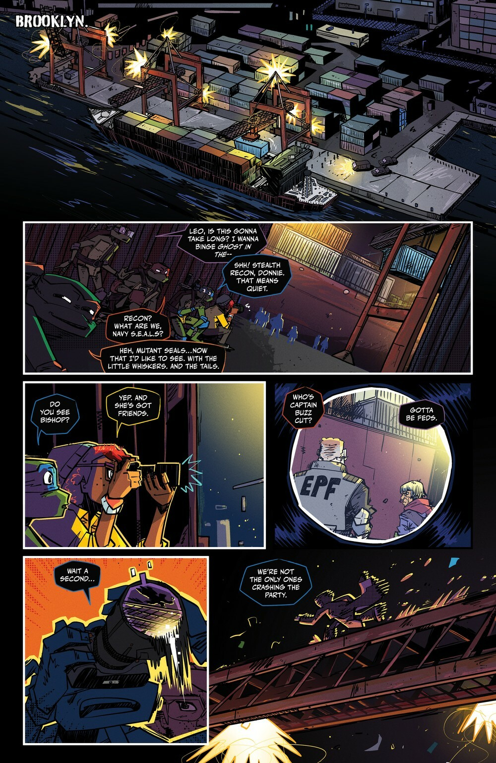 New tales of the TMNT based on the newest Ninja Turtles animated series! Fugitoid is here: A classic TMNT ally makes his comics debut for this fresh era of turtle power. And he needs help! When the Ninja Turtles run across Fugitoid in the midst of an E.P.F. attack, they aren’t sure they can trust this strange, hyperintelligent robot. But they’ll soon learn that the runaway is more than meets the eye. By debut comics writer Andrew Joustra (Teenage Mutant Ninja Turtles: Chrome Alone 2 - Lost in New Jersey) and neon-punk comics artist Louie Joyce (Godzilla: Skate or Die, Haphaven, Past the Last Mountain).