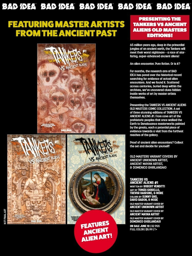 This June, gear up for the MOST INSANE comic ever devised – TANKERS VS ANCIENT ALIENS!