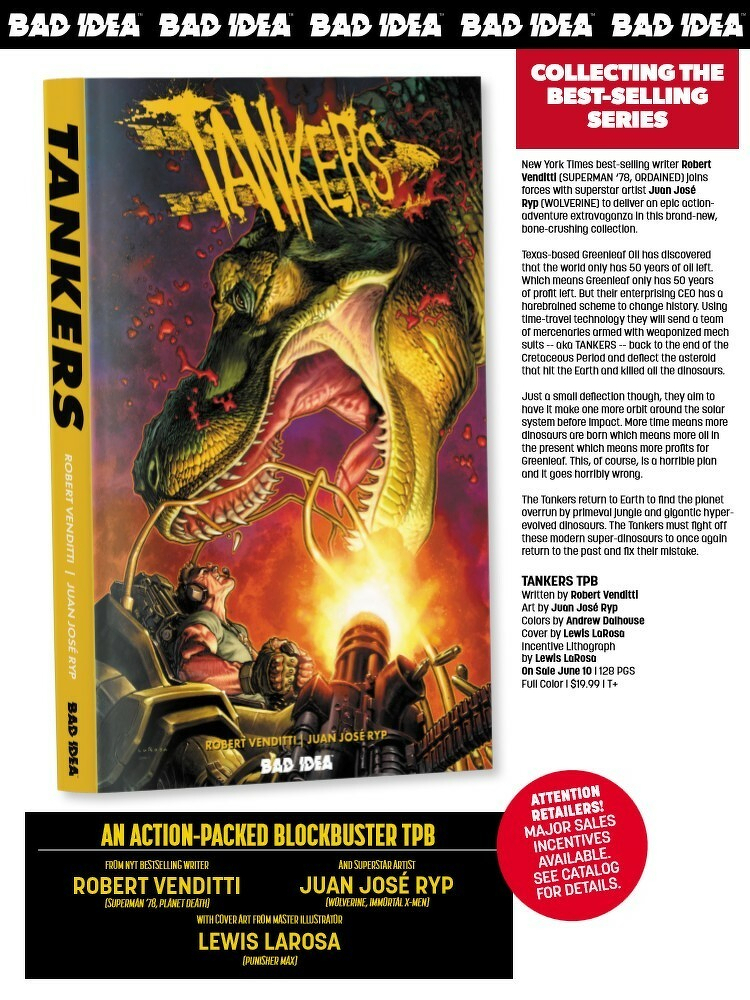 Then, go back in time to where the madness began with the all-new TANKERS trade paperback, collecting the original TANKERS series by Robert Venditti and superstar artist Juan José Ryp (WOLVERINE).