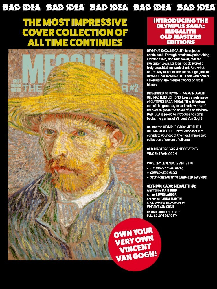See the catalog for stunning cover reveals from superstar artists like SUSPIRIA, PHIL HESTER and even VINCENT VAN GOGH, lettered previews, and so much more!