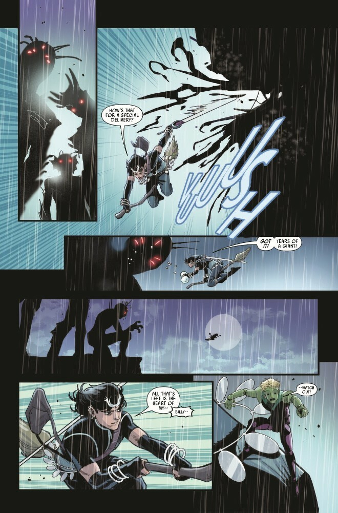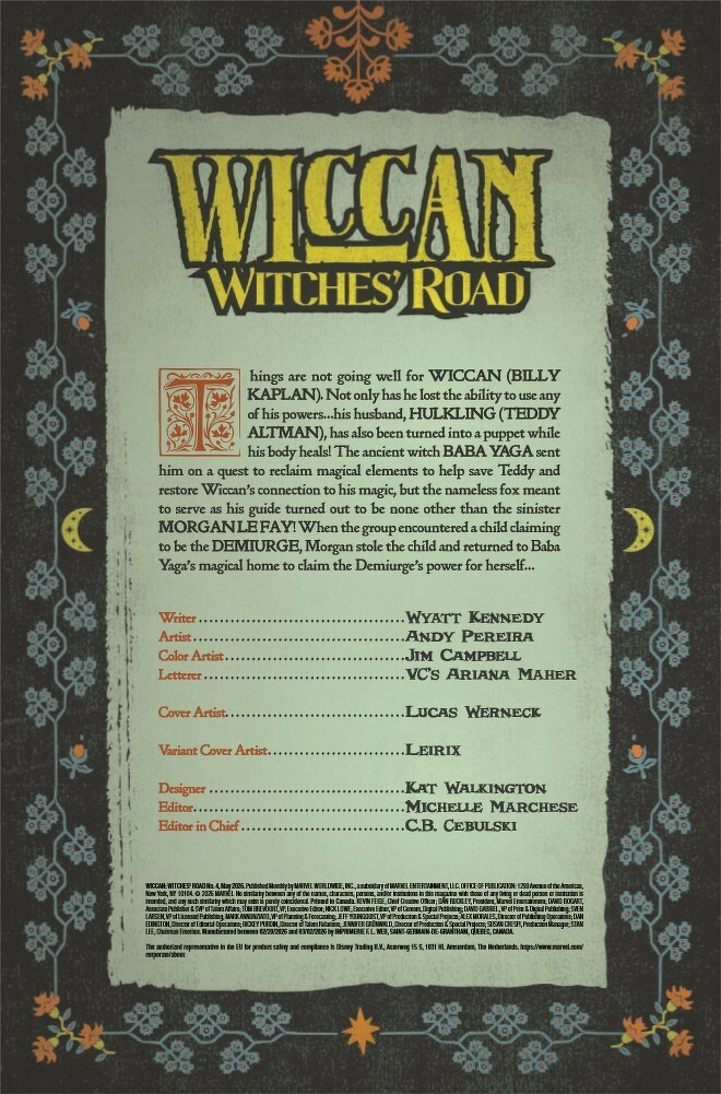 WITCHES BRAWL! The dark sorceress Morgan Le Fay reveals herself!!! Teaming up with the ancient witch Baba Yaga, Wiccan finds himself overwhelmed against the forces of dark magic and will have to call on his allies to help him! Meanwhile, the war among these great magical forces echoes out into chaos around the world!