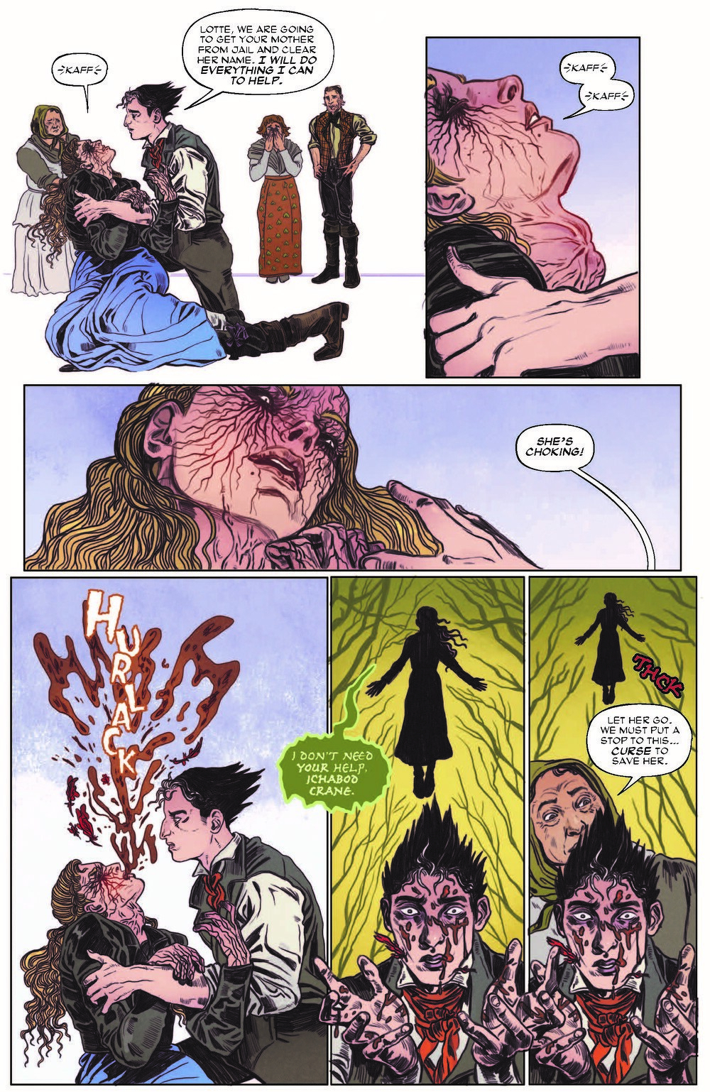 Tim Burton’s Sleepy Hollow (1999) continues in Return to Sleepy Hollow! In the final issue, Ichabod, Katrina, and Lotte unearth the horrible secret entangled in the roots of Sleepy Hollow. After her mother is arrested, Lotte loses control, seemingly possessed by an entity starved for blood. Time has run out. Ichabod must accept the supernatural and put a stop to it before it kills again—before it takes those who are most precious to him.