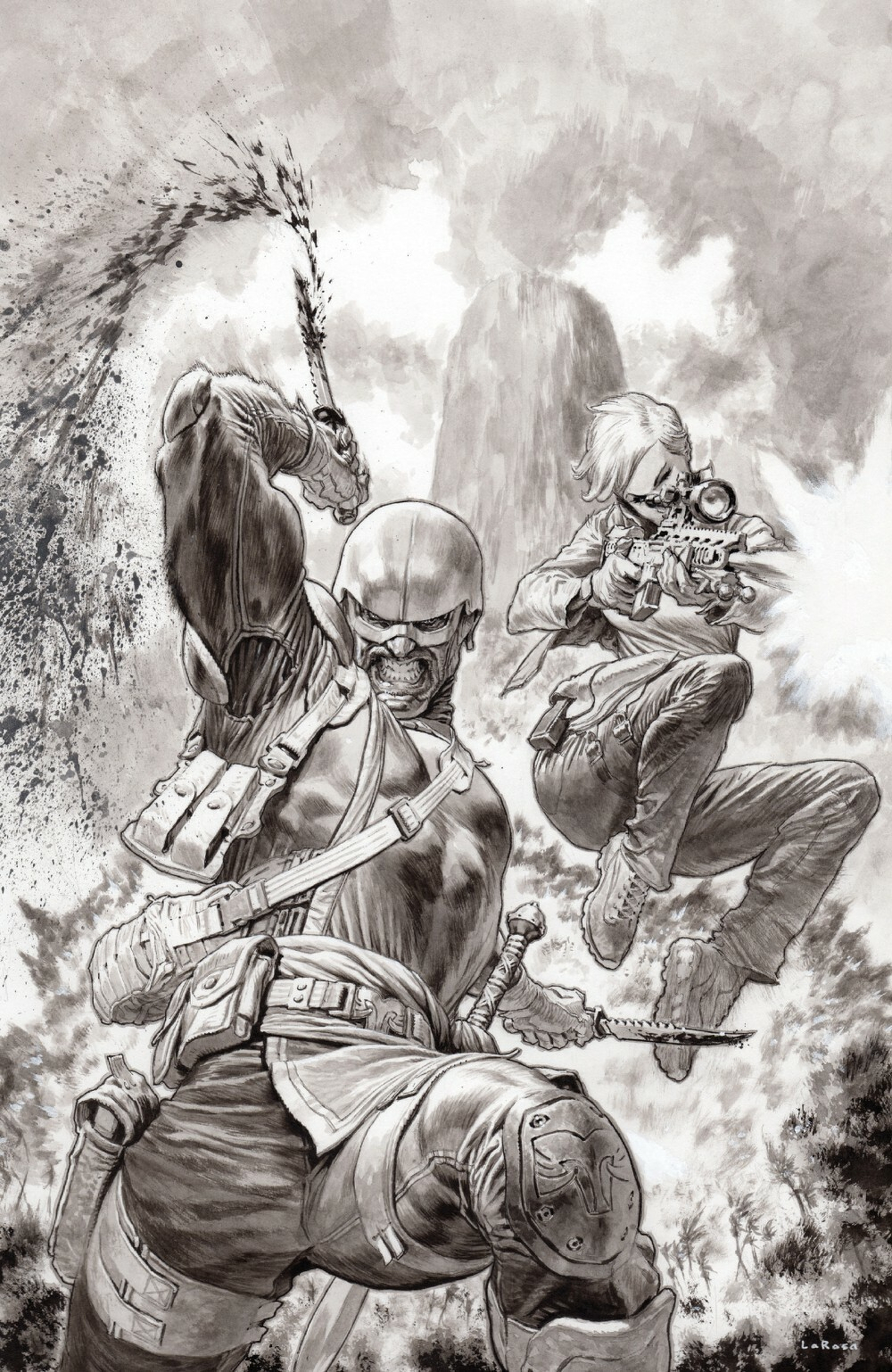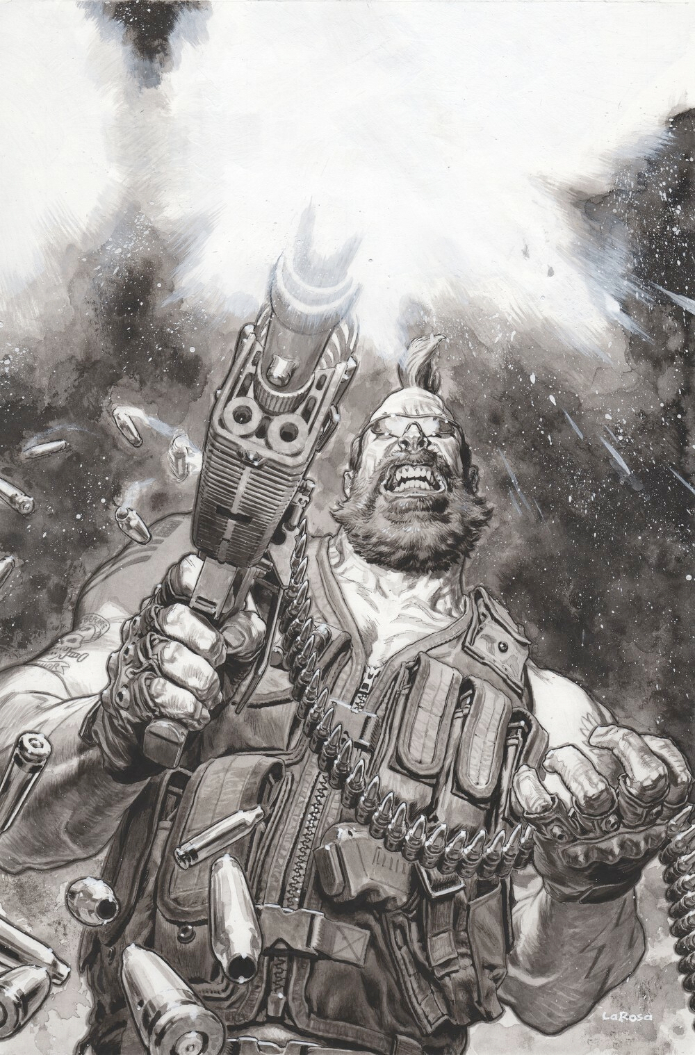 Beginning with FORT PSYCHO #1 (of 12) – hitting stands everywhere in August – LaRosa will join series co-creator and interior artist Brian Hurtt on ongoing shelf covers for the shrapnel-laden, nerve-tightening action epic that will soon unravel the many secrets and betrayals of a team of disgraced secret agents … and the truth about the classified island prison where they have been sent to atone for their innumerable crimes. LaRosa’s raw black-and-white artwork will be made available as additional, incentive covers from FORT PSYCHO #1 onward through the series’ long-planned, closely held conclusion.