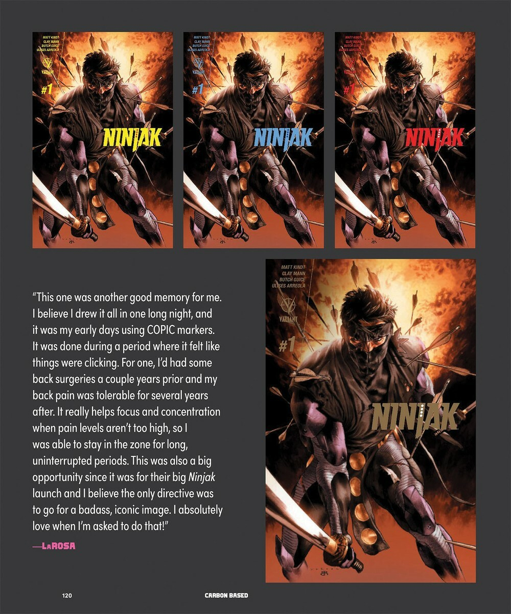 “What a tremendous honor to have a career retrospective of my work!” said artist Lewis LaRosa. “It's quite a ride to look back and see where you started and how you grew and evolved over the years with the opportunities you had. I believe my best work is still ahead of me, and I mean to bring my brutal best to Matt Kindt and Brian Hurtt's brilliant FORT PSYCHO! With CARBON BASED my greatest hope is that it gives anyone who flips through it the sudden urge to pick up a pencil and DRAW!”