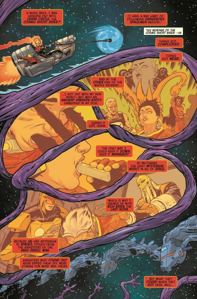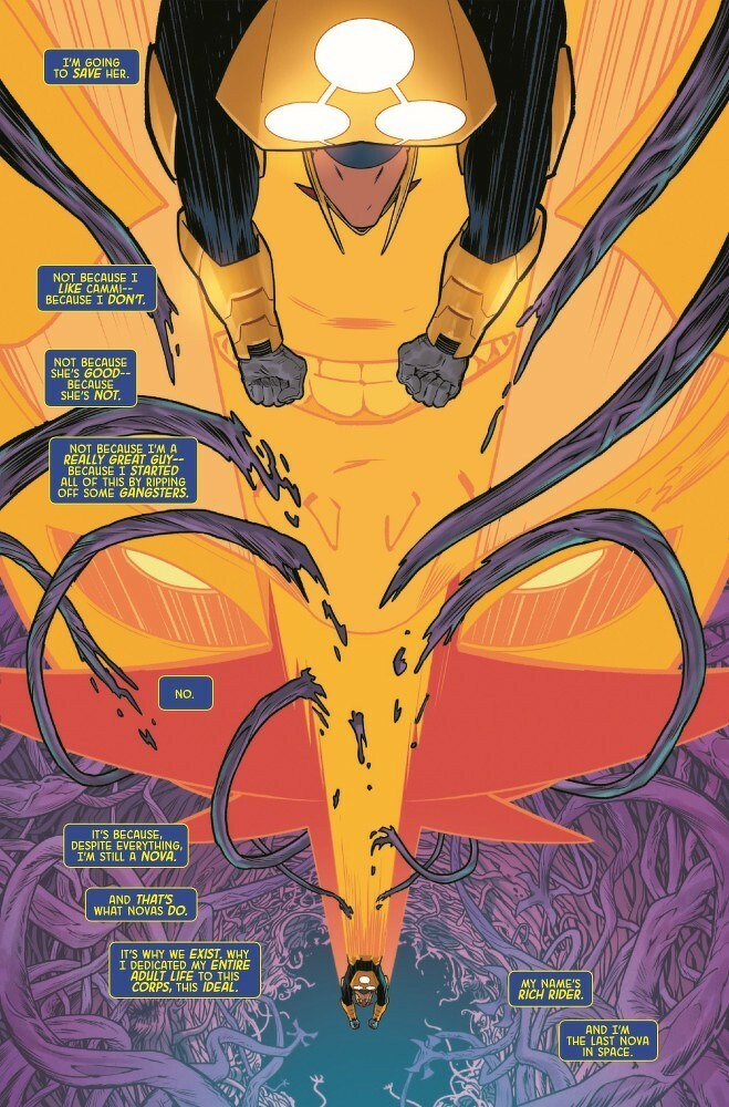 IN THE CROSSHAIRS OF…EVERYONE?! RICH RIDER - the last NOVA in space and the final hope of the once-proud NOVA CORPS! Dodging danger, chasing every credit and skipping town whenever it all comes crashing down around him: Rich has gotten mixed up with the mob, his ship has been stolen and now, somehow, those are the least of his problems. Will NOVA survive to see another day in the unsavory, deadly galaxy he’s sworn to protect?! You’ll just have to wait and see…