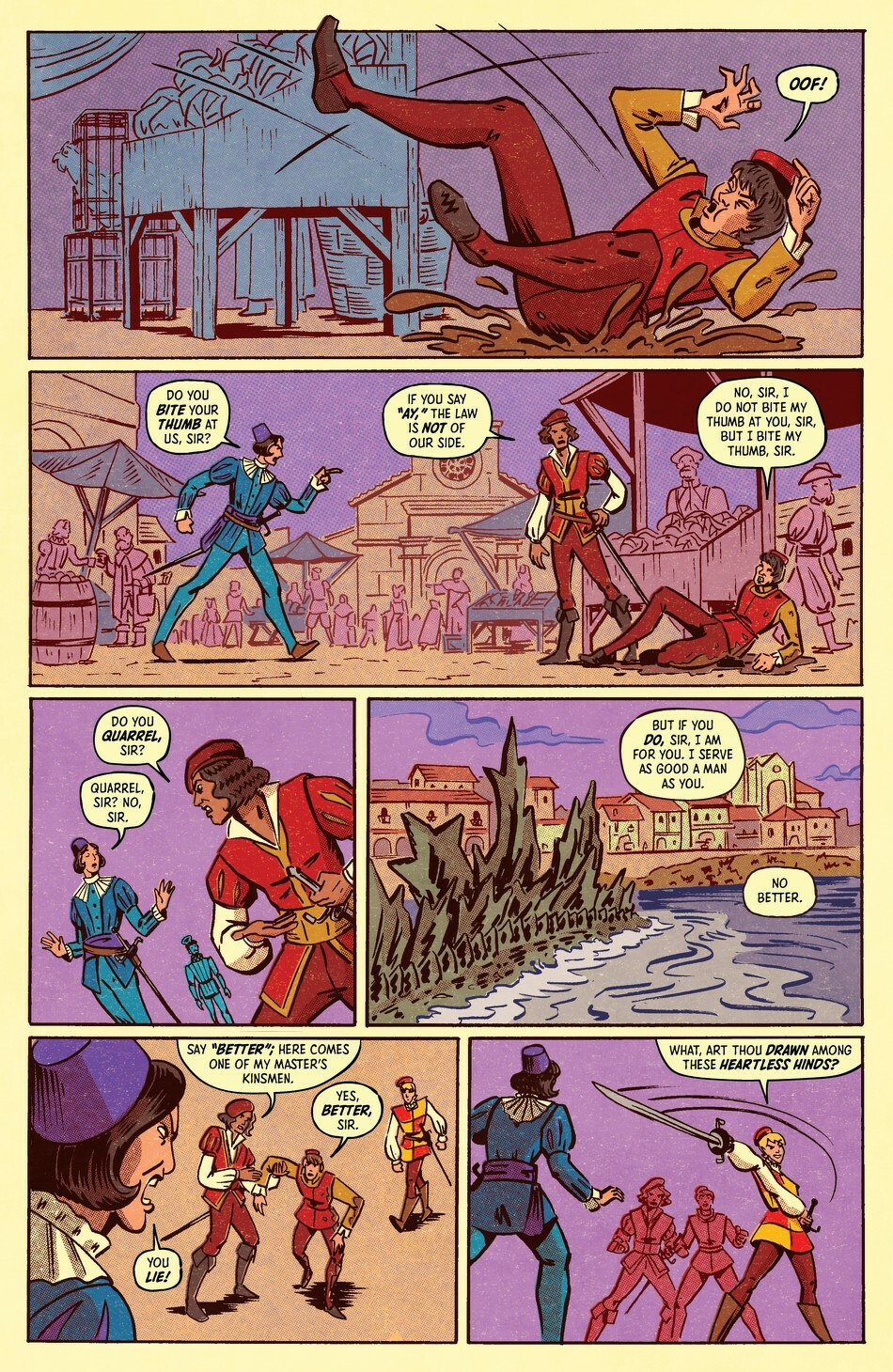 The explosive literary mashup series returns! But this time, Godzilla is taking on the classics one story at a time. O Godzilla, Godzilla, wherefore art thou Godzilla? First, it’s invading the Bard’s most revered play, Romeo & Juliet. Families at war! Forbidden love blossoming! Godzilla on its path of destruction! Fair Verona won’t be so fair for long! And that’s not all: Tom Scioli is returning to the series to write and illustrate a backup story starring the legendary thief entitled “Robin Hood and the Monster of Nottingham!”
