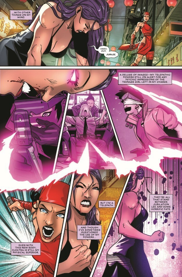 Danger comes for Psylocke from every angle! How will Psylocke survive when both Elektra and the Snakeroot Clan attack? And how can she protect Jubilee, when she lands in the crosshairs of Psylocke’s enemies?