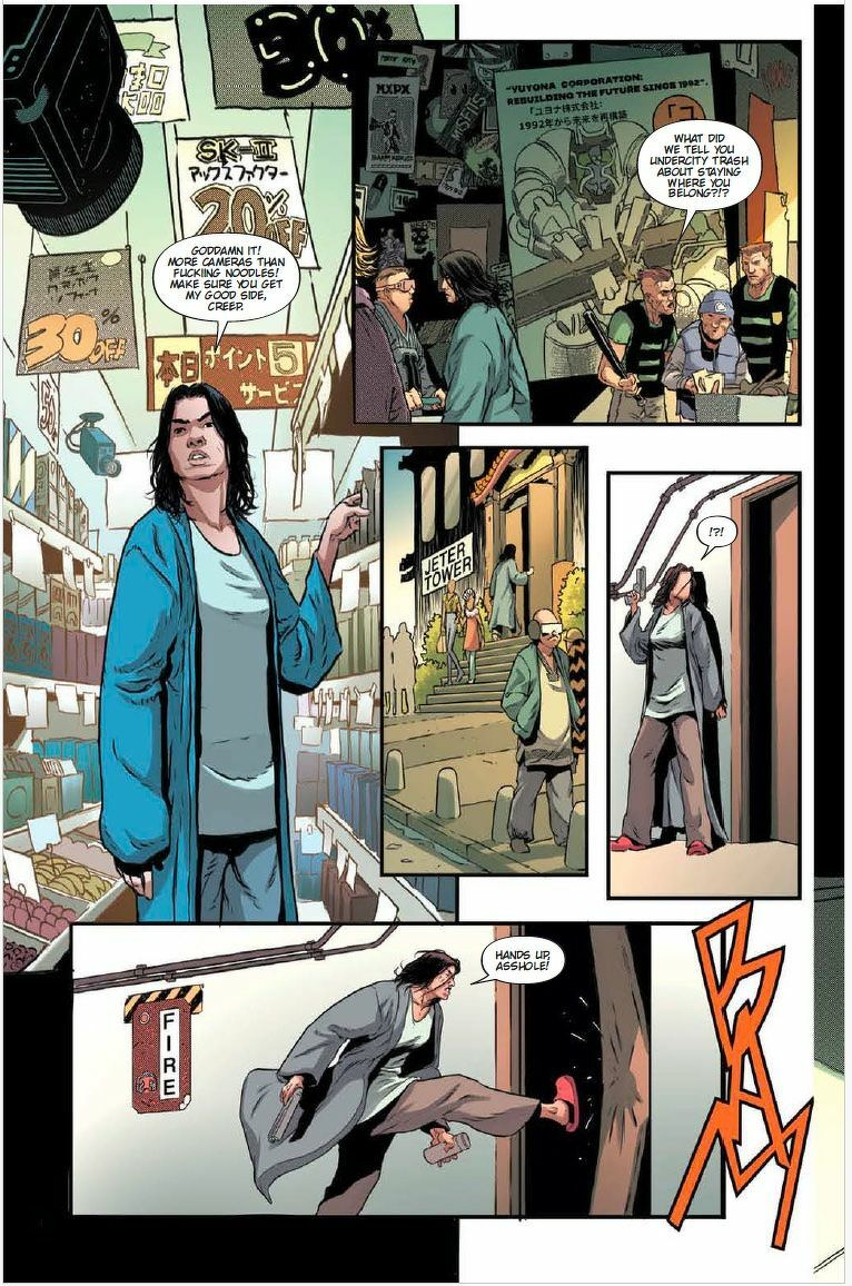 Media Release – Titan Comics is excited to preview a first look at BLADE RUNNER: TOKYO NEXUS: TO LOSE IS TO WIN #1 - Written by horror and sci-fi writer Nancy A. Collins (The Swamp Thing) and illustrated by artist Mariano Taibo (Predators: A Predatory Life), Blade Runner: Tokyo Nexus: To Lose is To Win #1 continues the story as Uldren discovers Mead and Stix are still alive, and sets out to kill them before they can reveal his treachery…