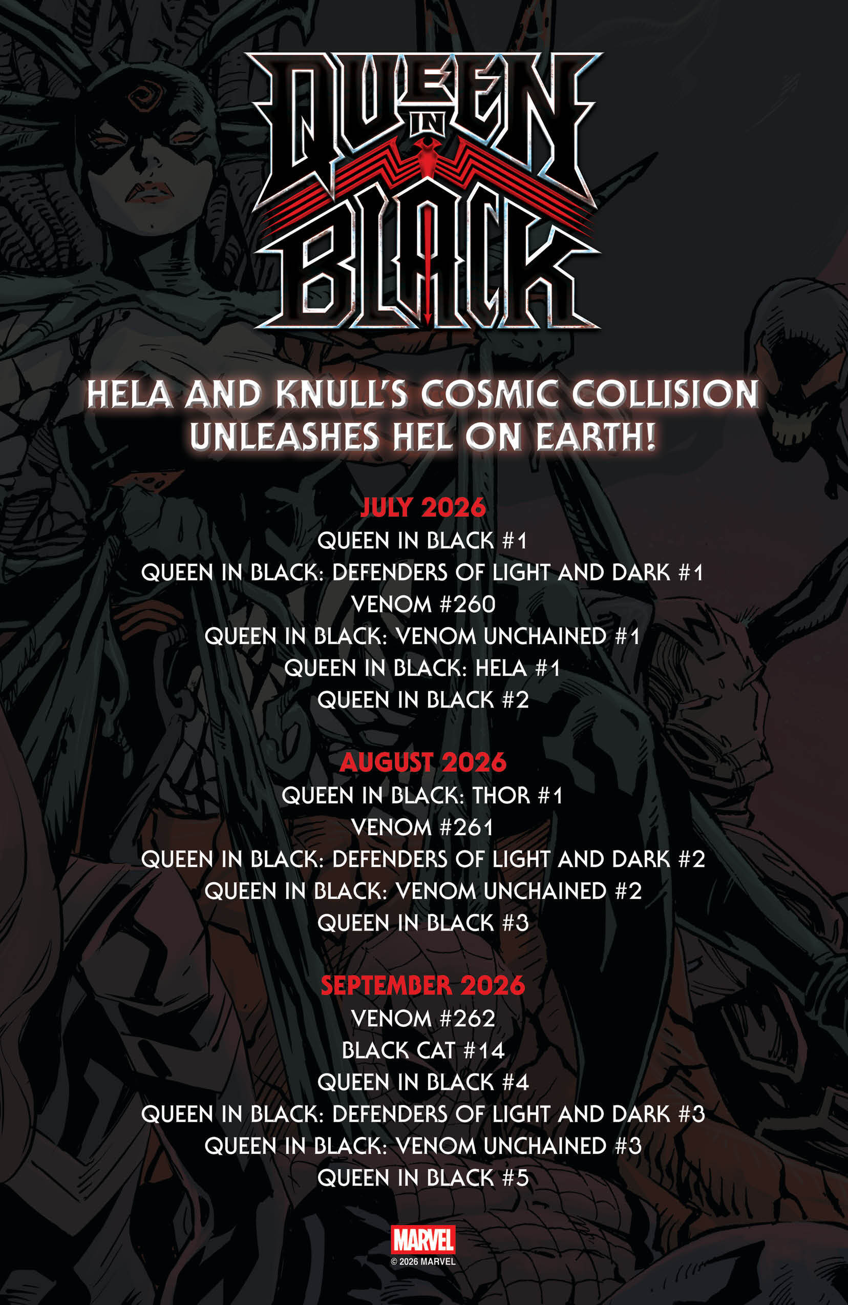Over the last few weeks, several QUEEN IN BLACK tie-in series and issues were also announced. Check out a handy checklist so you don’t miss a single pivotal chapter!