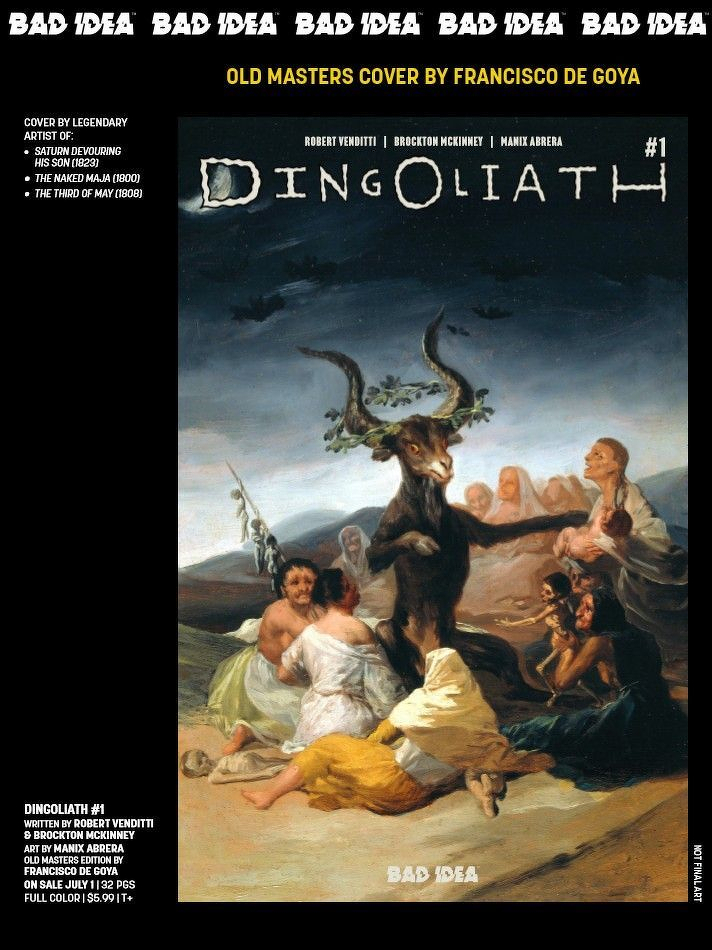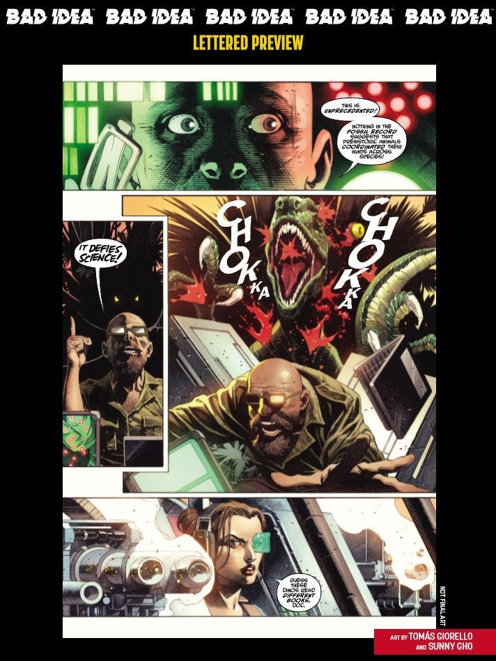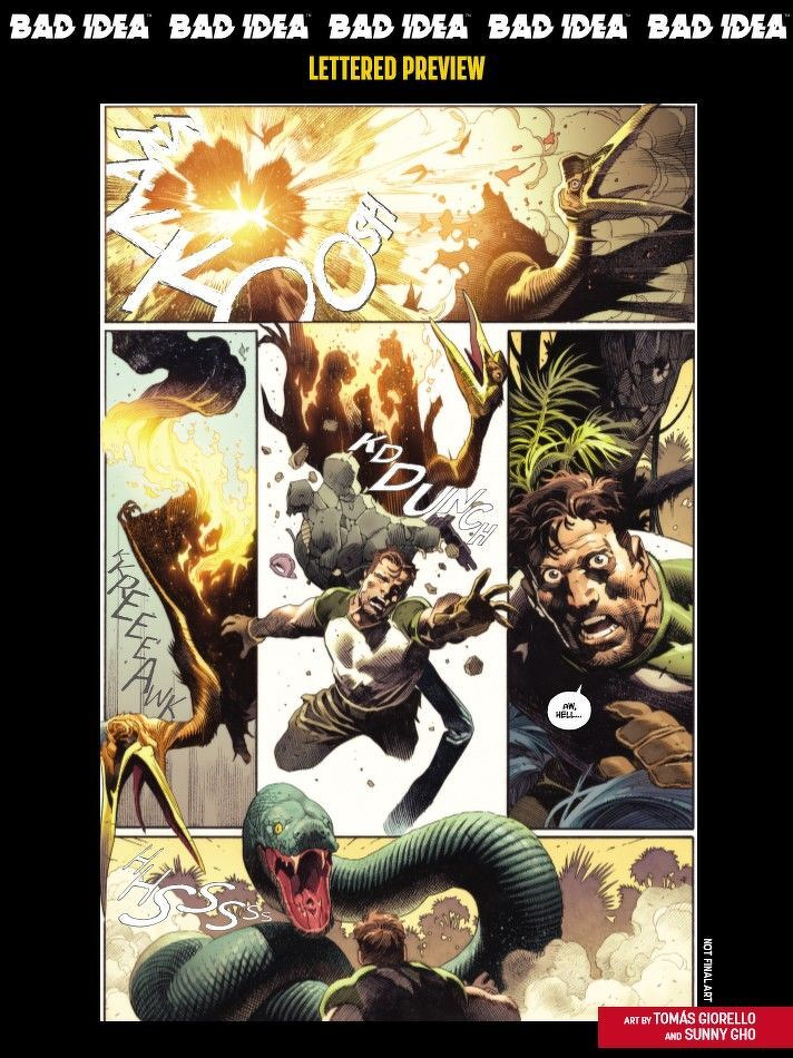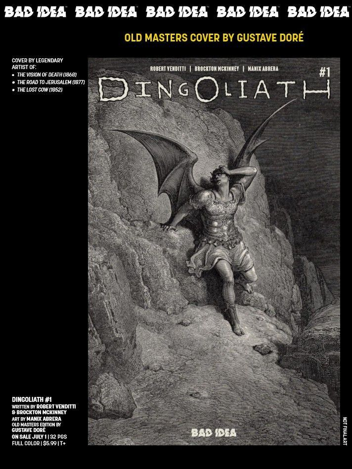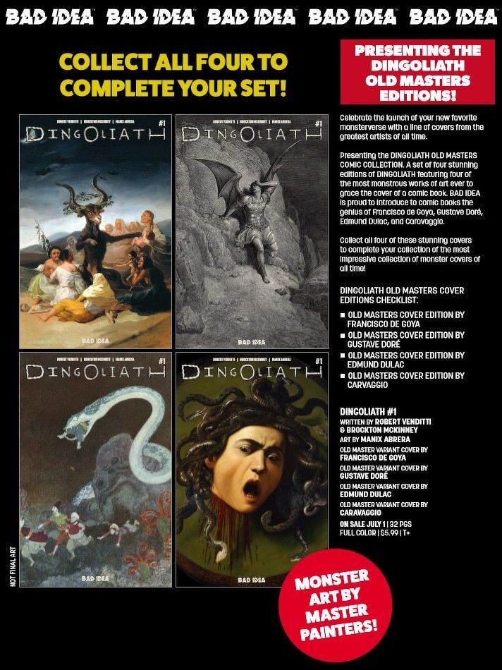 PLUS, from the twisted minds of superstar artist Manix Abrera (THUNDERCATS), New York Times best-selling writer Robert Venditti (SUPERMAN ‘78), and acclaimed indie horror director Brockton McKinney (REPTCHILD) comes the first terrifying tale in a groundbreaking, all-new HORROR UNIVERSE in -- DINGOLIATH.