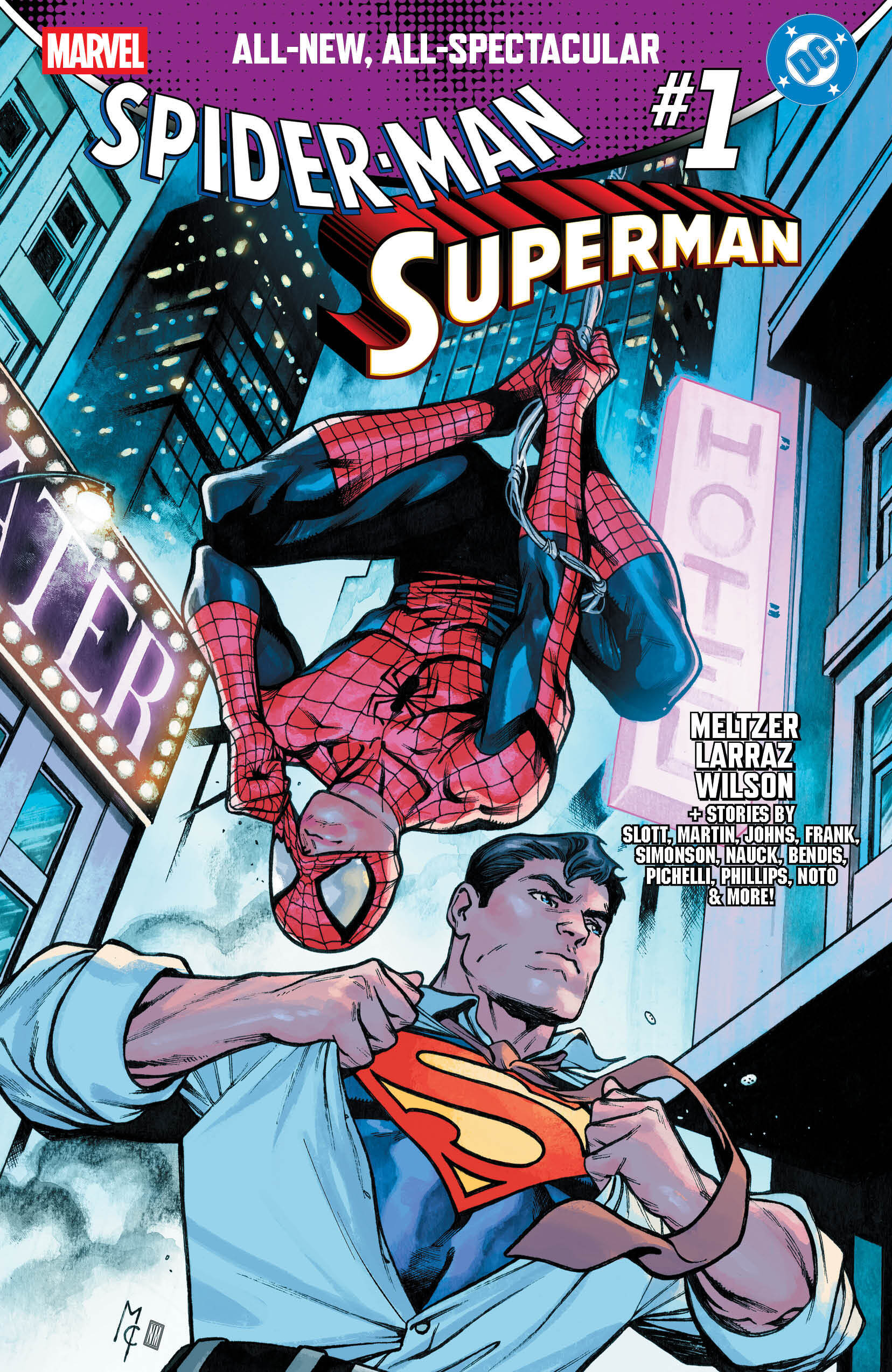 Media Release – Marvel’s SPIDER-MAN/SUPERMAN #1 is on sale now! The historic crossover one-shot delivers an action-packed and heartfelt adventure between Spider-Man and Superman by New York Times bestselling author Brad Meltzer and superstar artist Pepe Larraz, along with backup tales featuring more Marvel/DC character team-ups. Debuting to critical and fan acclaim, the highly sought-after issue will return next month with a Second Printing featuring all-new variant covers by Jim Cheung and Martin Cóccolo, as well as new virgin variant covers of Ryan Stegman and Peach Momoko’s first printing covers. DC’s crossover one-shot, Superman/Spider-Man, also returns next month with a new printing.
