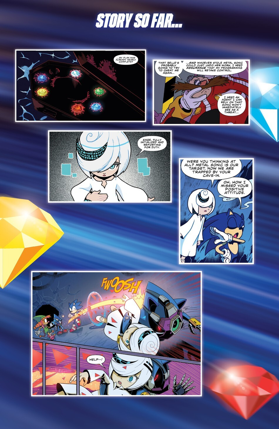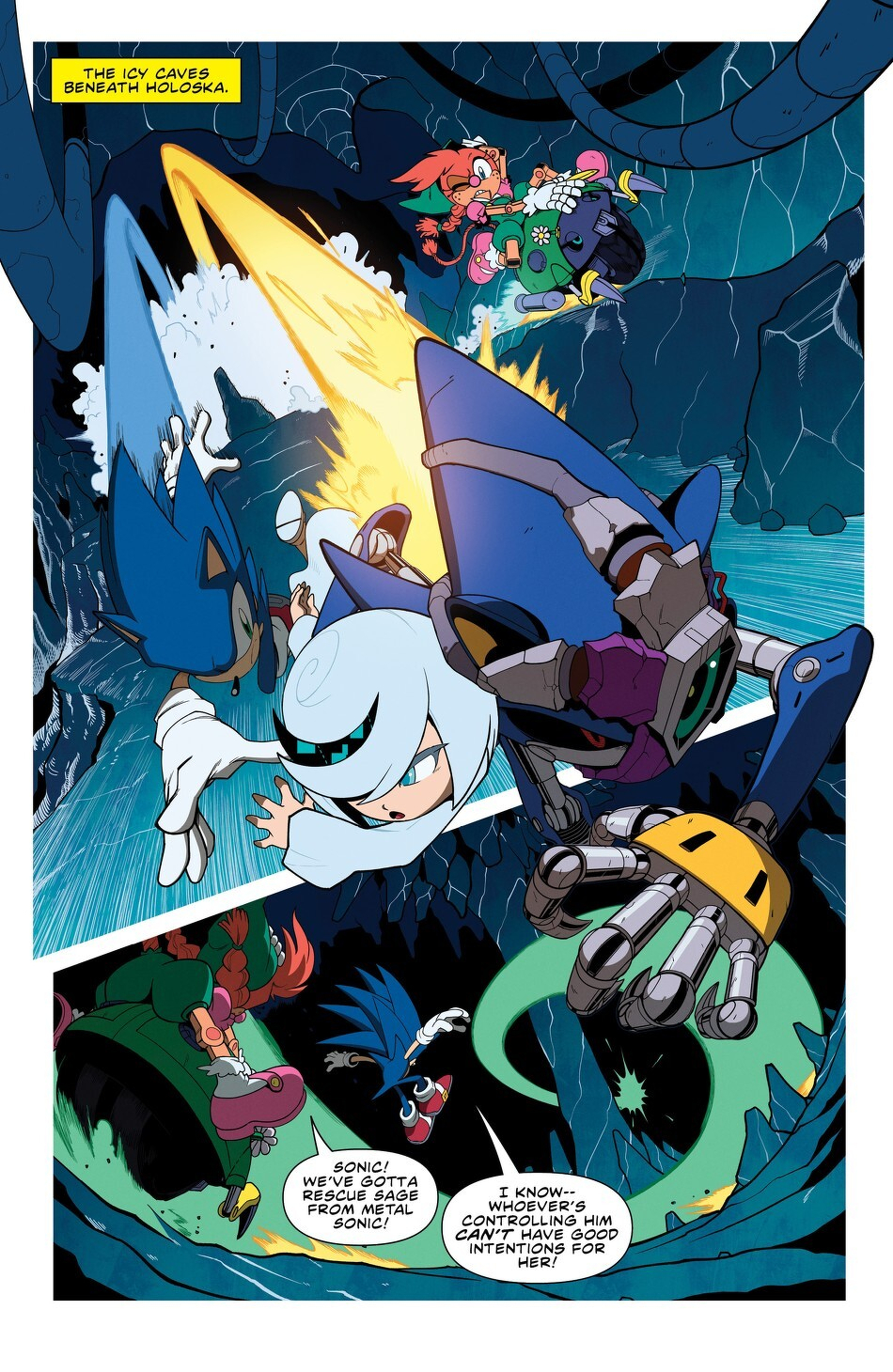With Sage captured by a corrupted Metal Sonic, the favorite daughter of Dr. Eggman is about to be deleted. The only way to survive? Combine forces with her “sister,” Belle. As the two overcome their pain and fight to survive, they find themselves caught with Sonic under the whim of a mysterious ghostly figure.Imprisoned in its sinister lair, will the children (and ultimate enemy) of Dr. Eggman be trapped forever beneath the harsh ice?