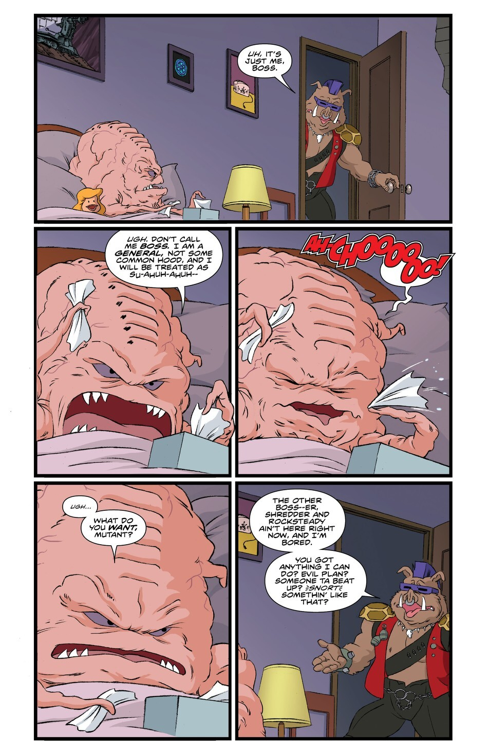 Krang, the Great Warlord of Dimension X…has a nasty cold. And he’s miserable. Shredder and Rocksteady are off on a mission of their own, leaving only Bebop to keep the ill alien company, and with nothing good on TV, Krang demands entertainment. So Bebop tells him a bedtime story—a fairy tale filled with heroes and villains, queens and creatures. Have a fun time storming the castle in the latest issue of TMNT: Saturday Morning Adventures.