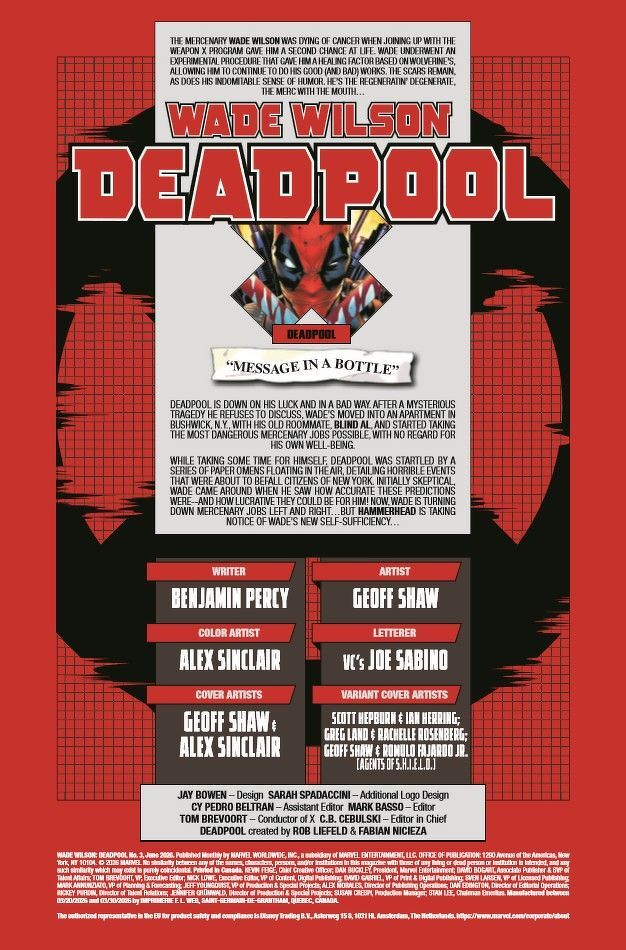 ONLY SMILING ON THE OUTSIDE! WADE WILSON is down, and fate (and the gangsters he’s gotten wrapped up with) keep kicking! He’s smiling on the outside, but what tragic fate has befallen DEADPOOL? Witness the gut-wrenching horror Wade has endured…even as he walks into a deadly murder in Central Park that will change the course of his life! RATED PARENTAL ADVISORY.